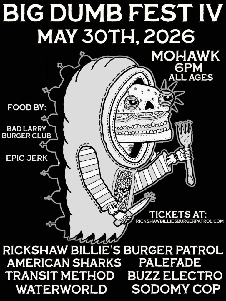 RBBP’s fourth annual festival, BIG DUMB FEST IV will take place on May 30th, 2026 in Austin, TX. Full line-up, food vendors and details follow below.